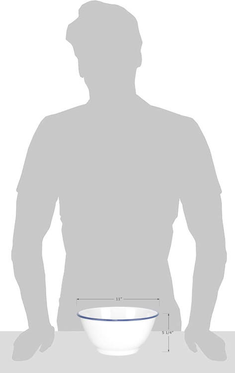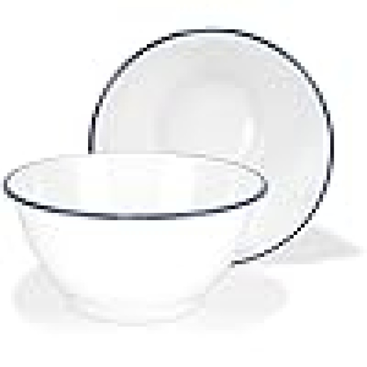 Set of 2 Enamelware Metal Large Classic 4 quart Round Salad Serving Bowl, Solid White/Navy Blue Rim
