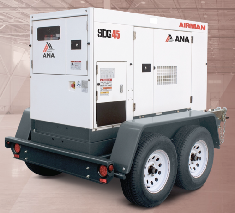 • Airman SDG45S-8E2 45 kVA Prime Power 28.75 Hr Runtime Mobile Generator