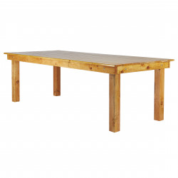• Whether you want to create a cozy look at home or for your next this farm table is perfect. This beautiful wood table is sturdy enough to use in restaurants and can be used without linens to create a country-rustic atmosphere