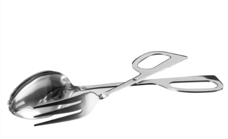 Fork and Spoon Salad Tongs, Satin Finish Stainless Steel