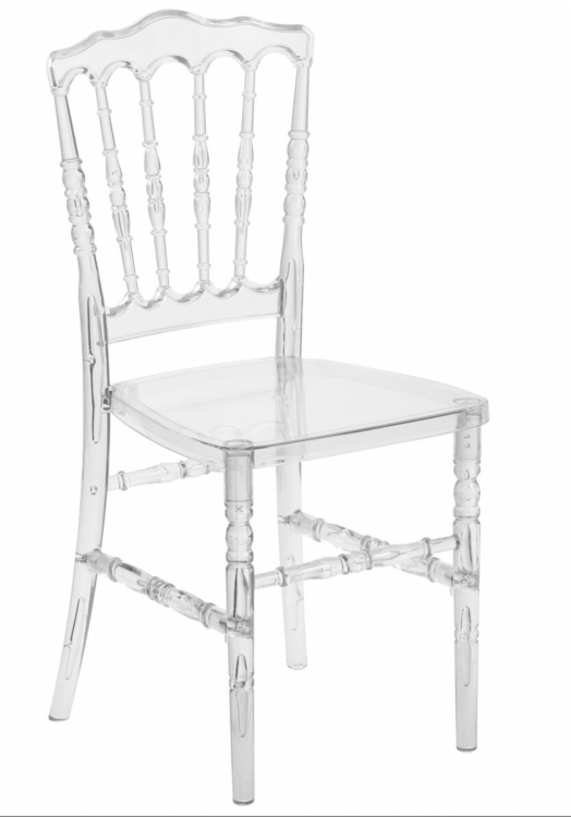 The Clear Resin Napoleon Back Chair is the wedding and party scene. The Luxurious back is ultra contemporary. Super thick vinyl cushion for max comfort.Clear Resin Napoleon Back Chair Product Information: